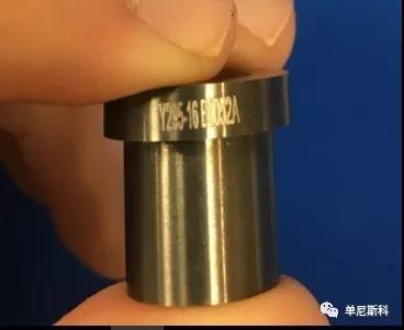 Dynisco提供各種不同直徑、長度和入口角的毛細管口模。每一個口模都有一個特定的產品編號,具體如下,其中為進模角,為口模dimeter(單位:英寸)乘以103,為模具長徑比。每個模具的零件號可以在模具的邊緣找到,見下圖。